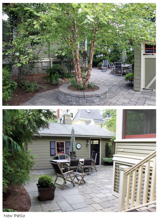 Our clients came to us with idea of creating a new kitchen, breakfast area, bathroom, small home office, family room-music studio and an upstairs laundry room. The existing house is a wonderful Victorian, rich in detail. Our goal was to seamlessly integrate the addition into the existing structure keeping the new proportions in scale with the existing and replicating some of the appropriate Victorian details. We also designed a patio to replace the deck we removed. The idea was to develop a connection between the garage, driveway and back door, while creating a pleasant secluded sitting area. Typically the side of the garage is a nondescript wall one sees when walking to the car. We visually pulled the space together by using the wall of the garage as an asset to define the patio and seating area.