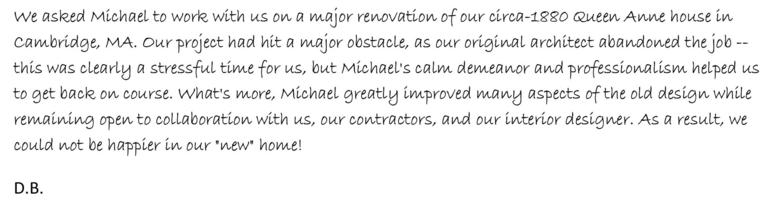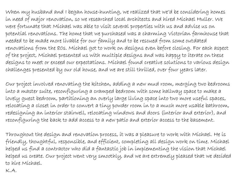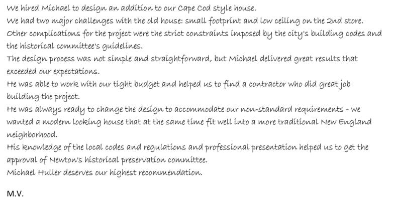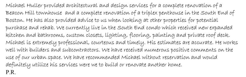 Michael Huller Architects 1831 Washington Street Newton MA 02466 617-965-4618 rmdrdk@verizon.net