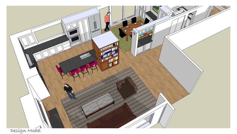 Our clients love to entertain and spend time in and around the kitchen area. First: They desired to have a more open kitchen, with lots of storage along with counter space for food preparation, multiple coffee machines, entertaining and the ability to work from their laptop while sitting at the island. Secondly: They also wished for dining area that would feel cozy have its own identity but still feel integrated into the kitchen. Thirdly: Open and integrate the kitchen with the living room while maintaining an identity for each individual space.